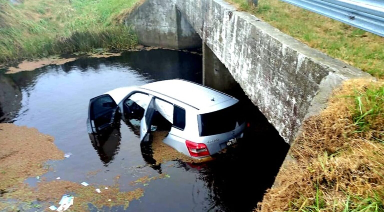Las intensas lluvias que azotan la zona contribuyeron al incidente, haciendo que un automóvil despistara y terminara en una alcantarilla llena de agua.