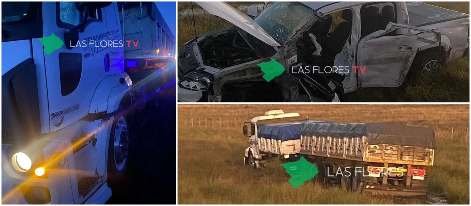 Esta mañana de sábado se produjo un choque entre un camión y una camioneta en el kilómetro 208 de la Ruta 3, en jurisdicción del distrito de Las Flores.