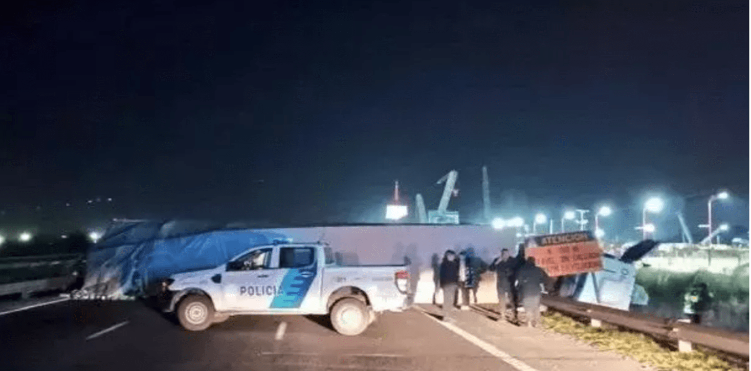 A raíz del vuelco en ese lugar se encuentra totalmente cortado el tránsito vehicular, lo que hace que quienes circulan por allí deben ser desviados por tutas alternativas.