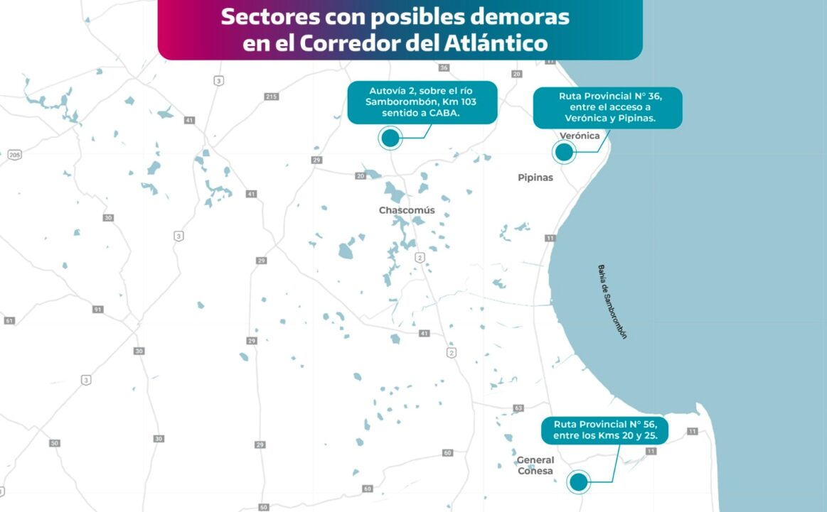 La Dirección de Vialidad de la Provincia de Buenos Aires advirtió sobre posibles demoras en el Corredor del Atlántico durante el próximo fin de semana largo, que se celebrará del sábado 14 al lunes 16 de octubre, en conmemoración del Día del Respeto a la Diversidad Cultural.