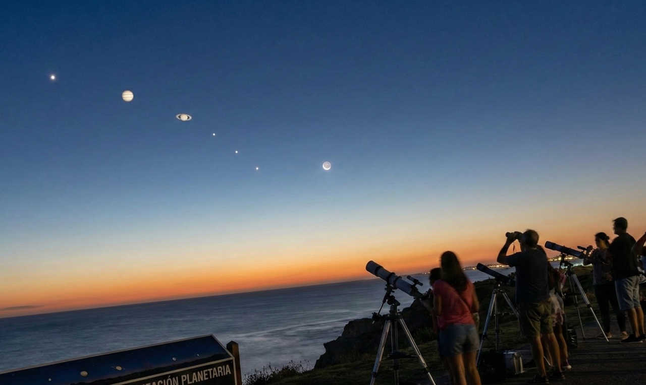 A finales de este mes, el cielo nocturno ofrecerá uno de los espectáculos más impactantes y raros del año: una alineación de seis planetas. Este fenómeno, conocido en el ámbito de la divulgación como “desfile planetario”, permitirá a los observadores en Argentina disfrutar de Mercurio, Venus, Júpiter, Saturno, Urano y Neptuno simultáneamente en la bóveda celeste tras la puesta del Sol.
