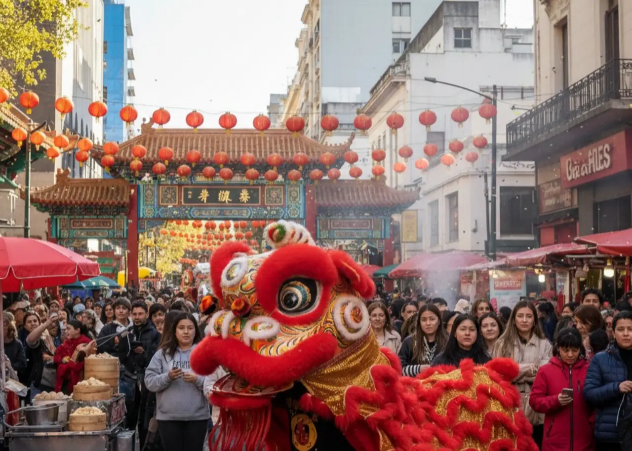 - Gastronomía en la calle Arribeños: Los locales ofrecen platos especiales como los Jiaozi (dumplings), cuya forma de lingote de oro simboliza la riqueza para el año entrante.