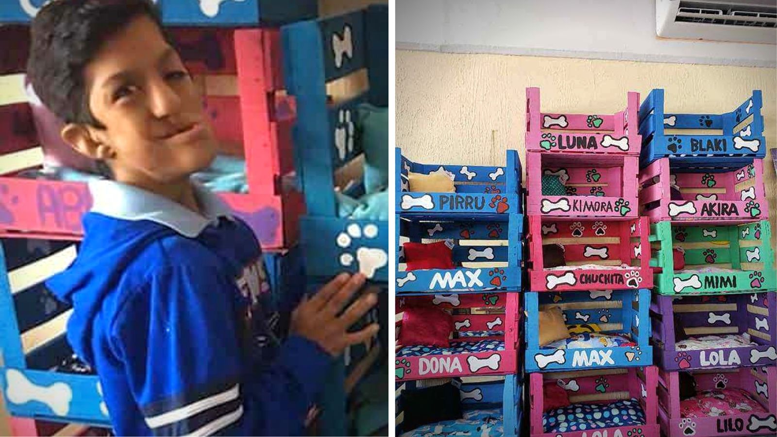 Joven con discapacidad fabrica camas para perritos y su madre pide que lo hagan viral