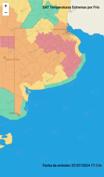 El Servicio Meteorológico Nacional (SMN) ha emitido una alerta roja por temperaturas bajas extremas para este lunes 8 de julio en varios distritos de la Provincia de Buenos Aires.