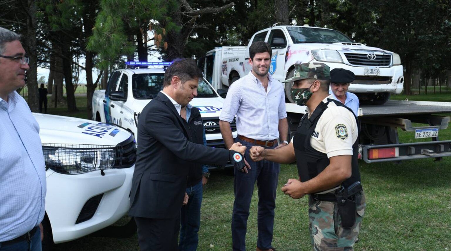 El Gobernador de la provincia de Buenos Aires, Axel Kicillof entregó esta tarde cinco patrulleros para el Comando de Prevención Rural de Ayacucho.