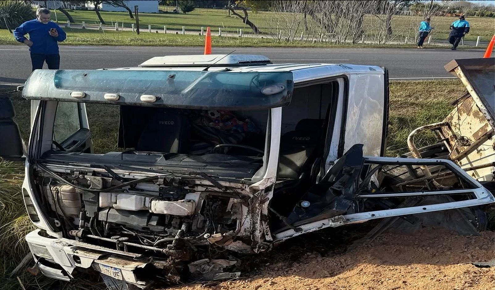 El vehículo transportaba piedras destinadas a la construcción, y como consecuencia del siniestro, tanto la cabina como el acoplado sufrieron graves daños materiales.