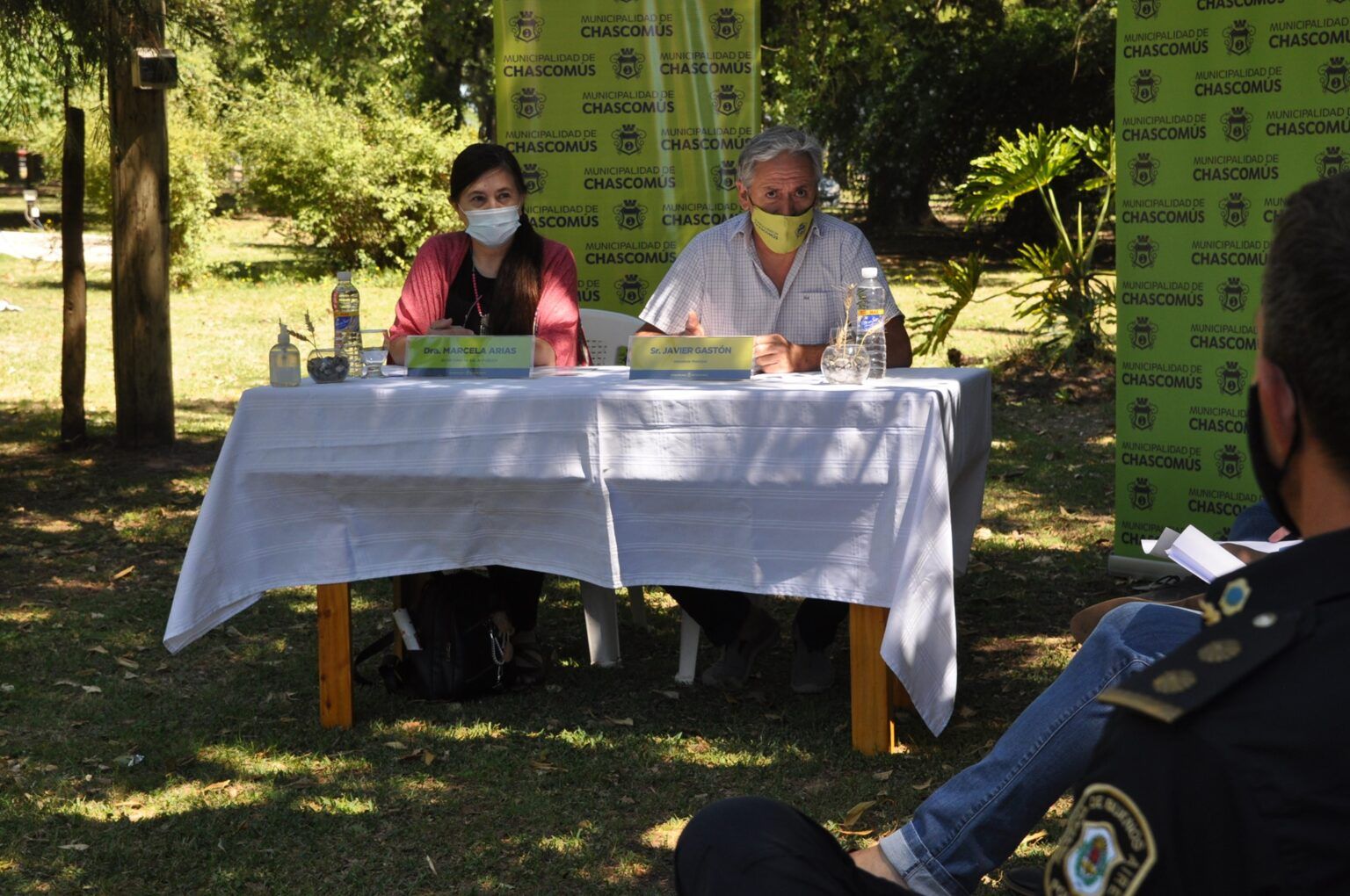 Durante el día de ayer y en el patio del Museo Pampeano el intendente de Chascomús, Javier Gastón y la secretaria de Salud Pública, Marcela Arias, encabezaron un encuentro destinado a coordinar acciones para garantizar el acceso de toda la comunidad a la vacuna contra el coronavirus.