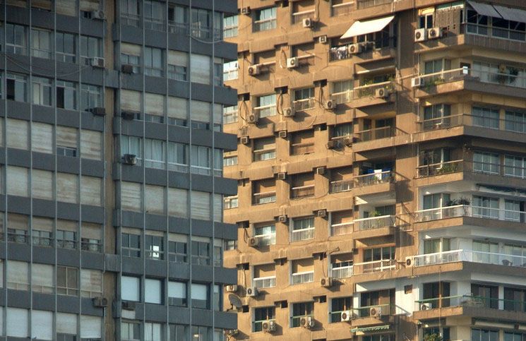 El desafío visual de hoy, es una fotografía de un paisaje urbano. Dos edificios, una postal que podría ser la vista desde nuestro balcón. Pero tiene una particularidad, que lo convierte en ilusión óptica: la perspectiva nos confunde.