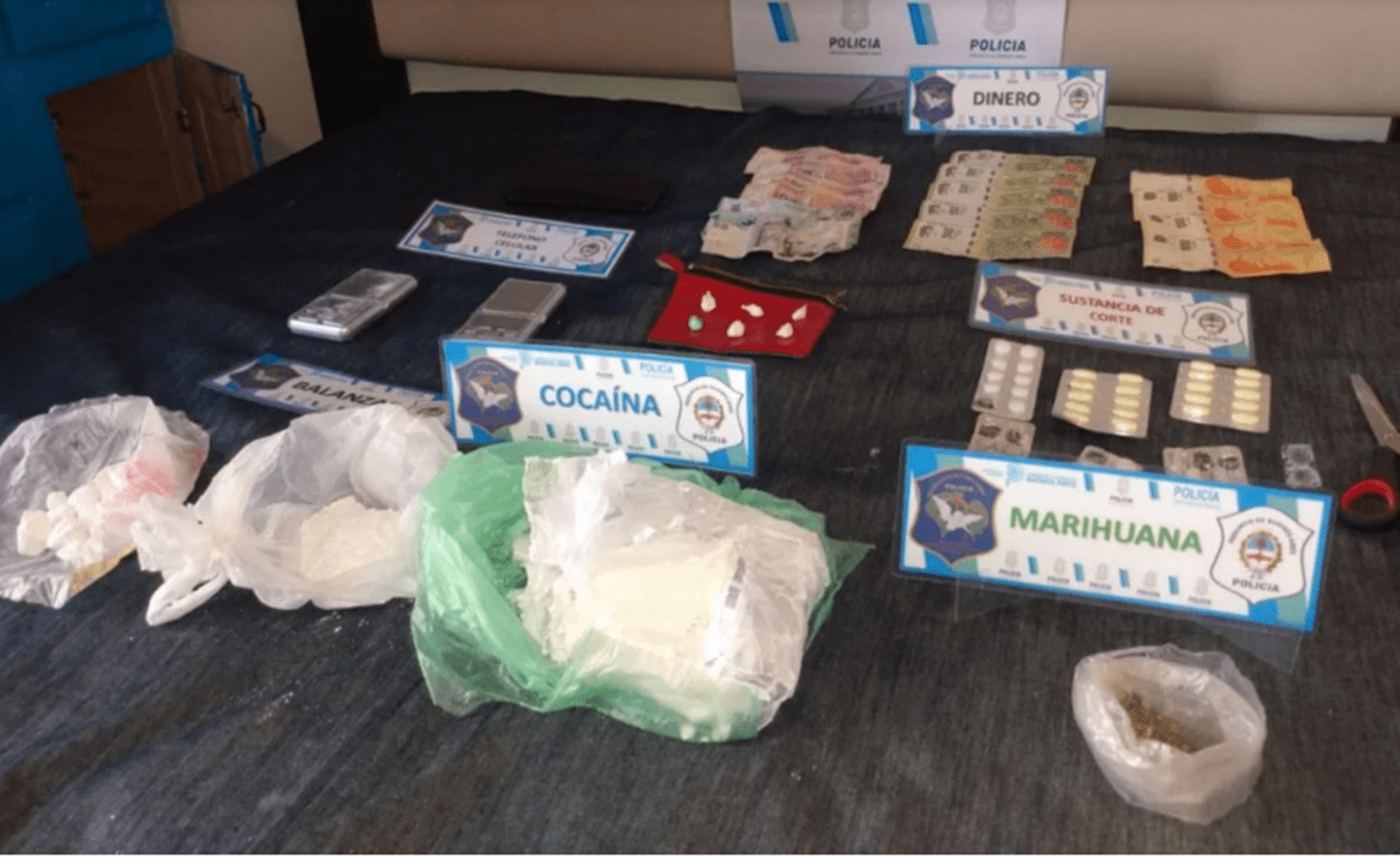 La investigación contó con 720 horas escuchas telefónicas y tareas de vigilancia, que permitieron establecer el domicilio de residencia de Rodríguez y los lugares que utilizaría para el ocultamiento, estiramiento y fraccionamiento de la droga.