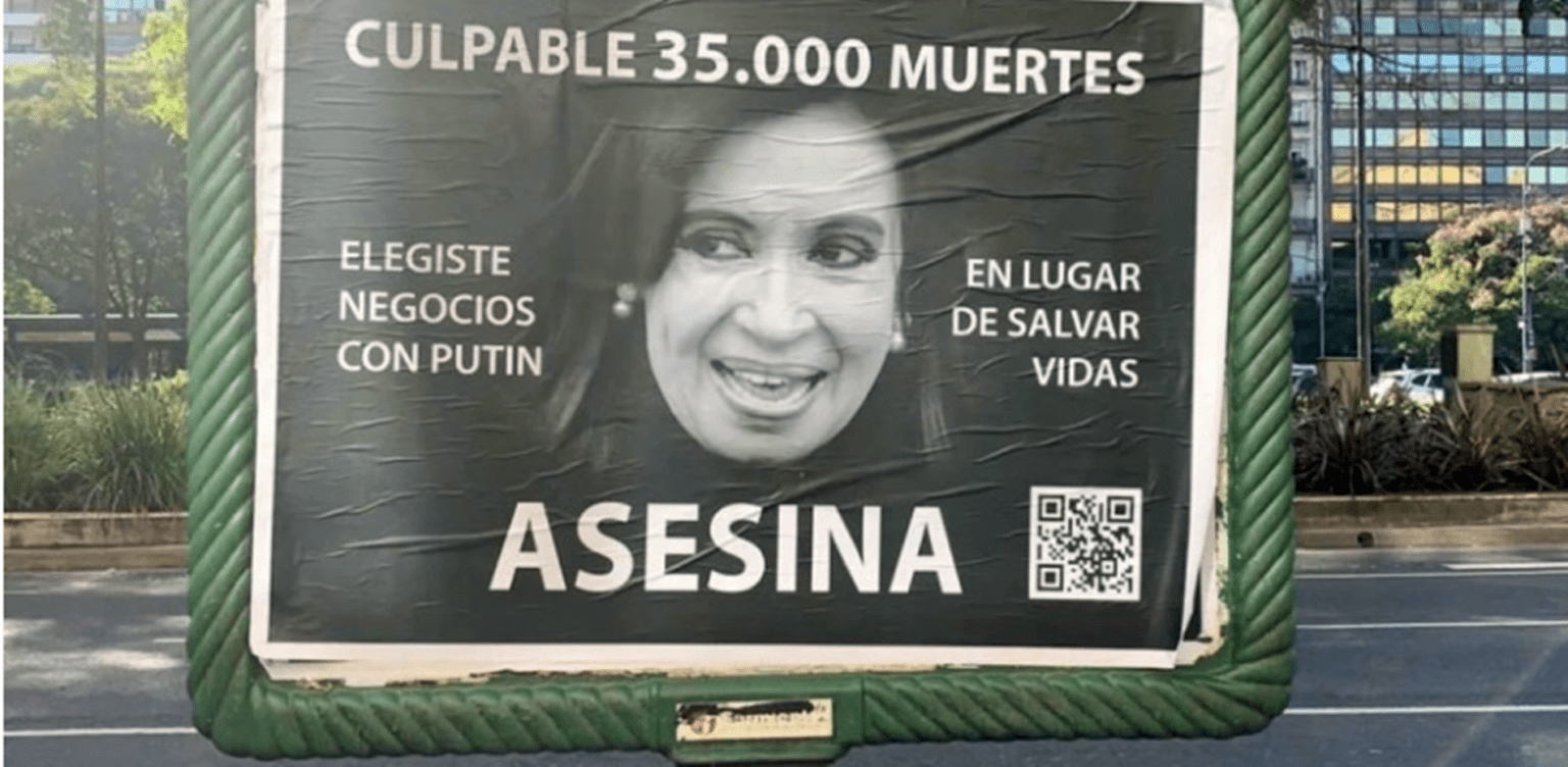 En medio de la fuerte interna que atraviesa el Frente de Todos, en las últimas horas aparecieron carteles con una foto de la ex presidenta en los que se la califica de “asesina”.