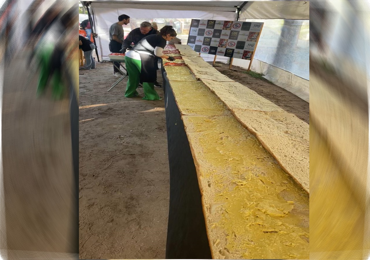La preparación de este colosal manjar requirió un esfuerzo conjunto, incluso desde la panadería local, que tuvo que diseñar moldes especiales para crear panes de 1,40 metros de largo.
