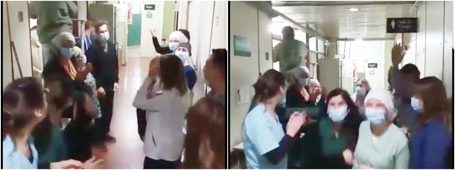Al ritmo de la canción Color Esperanza de Diego Torres, médicas, enfermeros y auxiliares comenzaron a cantar, bailar y aplaudir en los diferentes pasillos de la institución. A este festejo también se sumó el personal administrativo del hospital, con quienes se sacaron varias fotos ya que enfrentar la pandemia fue un gran trabajo de equipo.