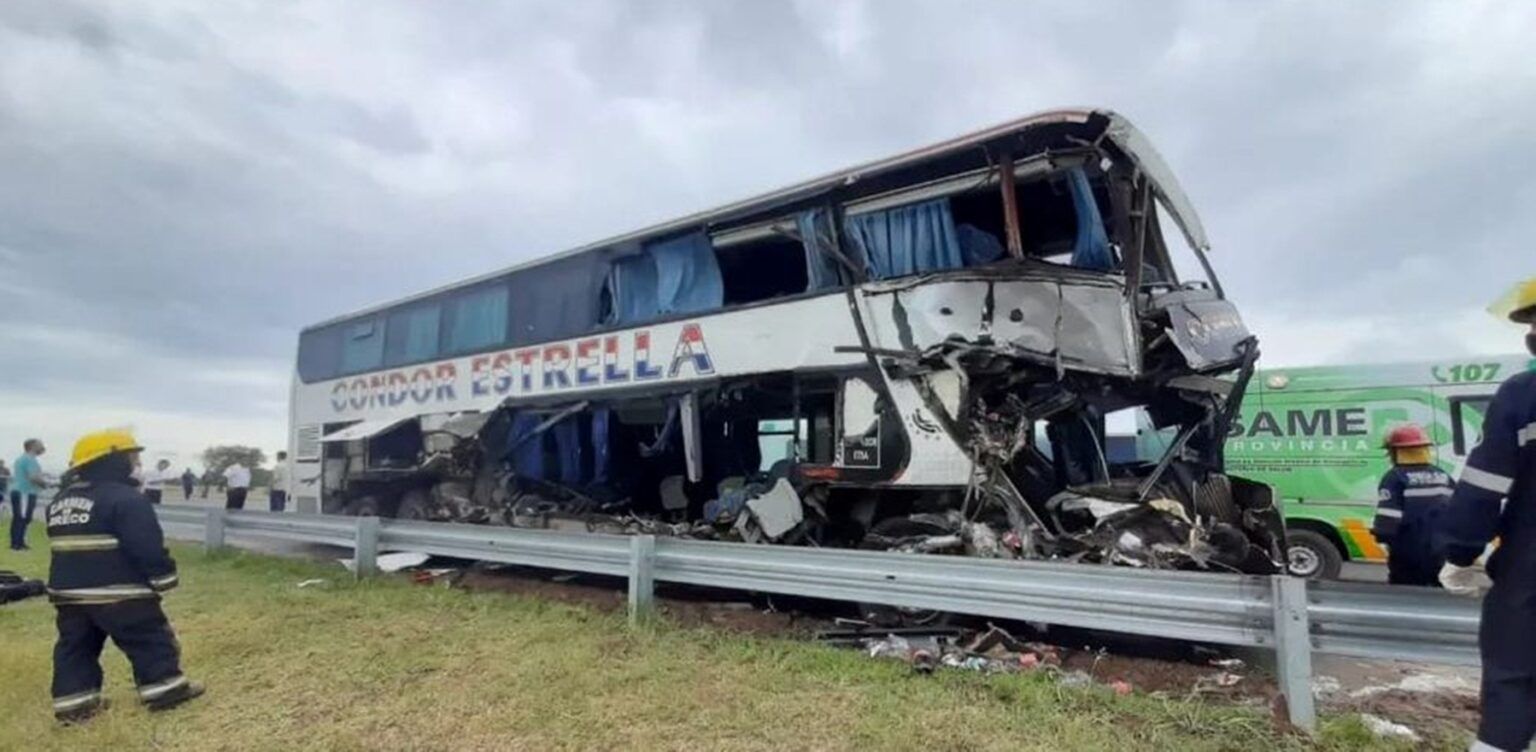 En la tarde de hoy martes 18 de enero y por causas que son materia de investigación, un micro doble piso de la empresa Cóndor-Estrella, chocó con un camión estacionado en la banquina de la Ruta 7 en jurisdicción del distrito bonaerense de Carmen de Areco.
