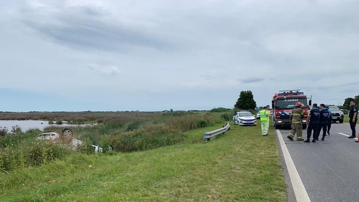 La conductora de un automóvil marca Fiat Palio, que se dirigía hacia Pinamar, perdió el control del vehículo, provocando que volcara a un costado de la ruta, quedando con sus cuatro ruedas hacia arriba.