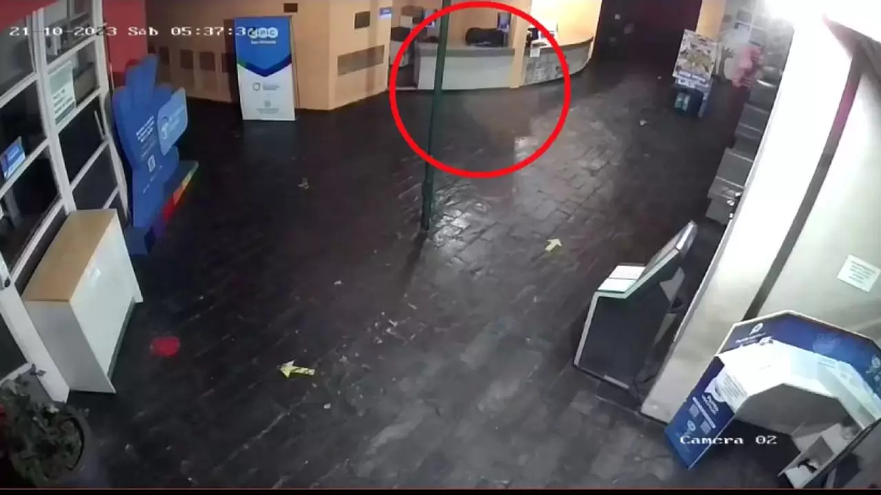 El registro corresponde a las 5:37 de la mañana, en momentos que el edificio estaba cerrado. Santiago Gómez, director de la estación de servicio, fue quién publicó la grabación.