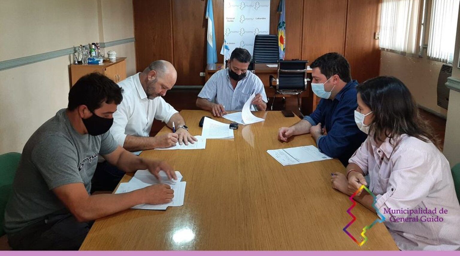 En el despacho del Intendente Municipal de General Guido, se llevó a cabo la firma del contrato para la obra “Ampliación de la Escuela N°3 de Labardén”, con la empresa adjudicada “CONAYA SRL”.
