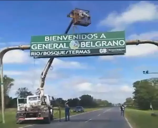 En la víspera, se colocó en el acceso a General Belgrano a través de la ruta provincial 29 un cartel sobre un pórtico que le da la bienvenida a quien accede a la ciudad como también le agradece su visita y augura un feliz viaje al automovilista que abandona la misma.
