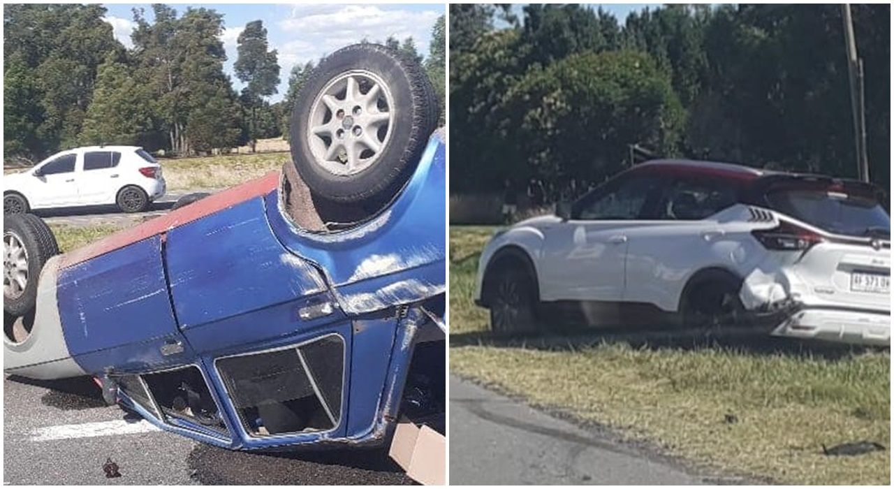 En la tarde de este lunes 15, un triple siniestro vial se produjo a la altura del kilómetro 192 de la Ruta 2 en dirección a Mar del Plata, entre los distritos de Castelli y Dolores, involucrando una camioneta Nissan, un Peugeot 208 y un Fiat 128, el cual volcó producto el fuerte impacto.