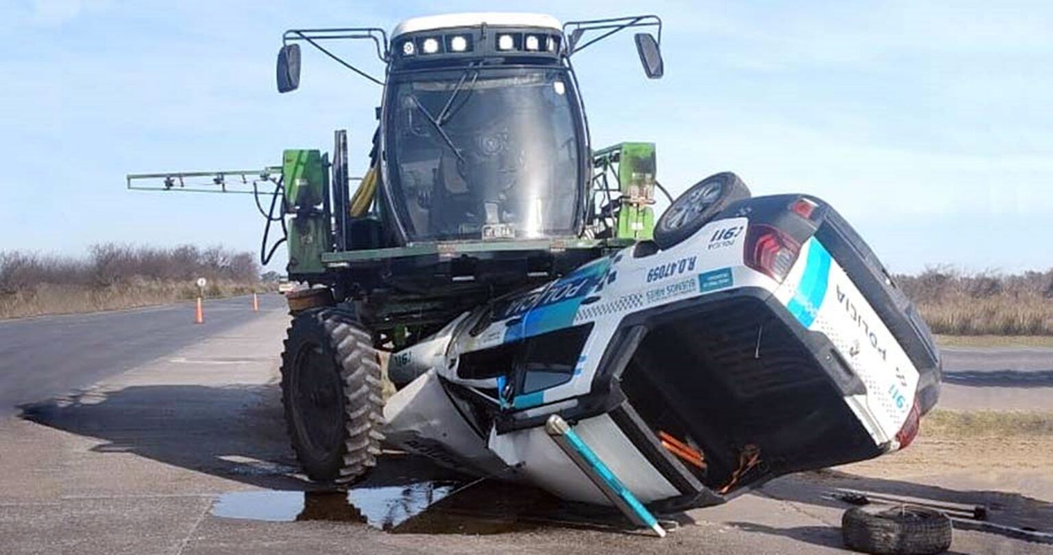 De acuerdo a lo que informó el portal local InfoCañuelas, la máquina agrícola se quedó sin freno y sin dirección. El conductor no pudo evitar que se dirigiera directamente hacia el móvil policial, destruyéndolo por completo.