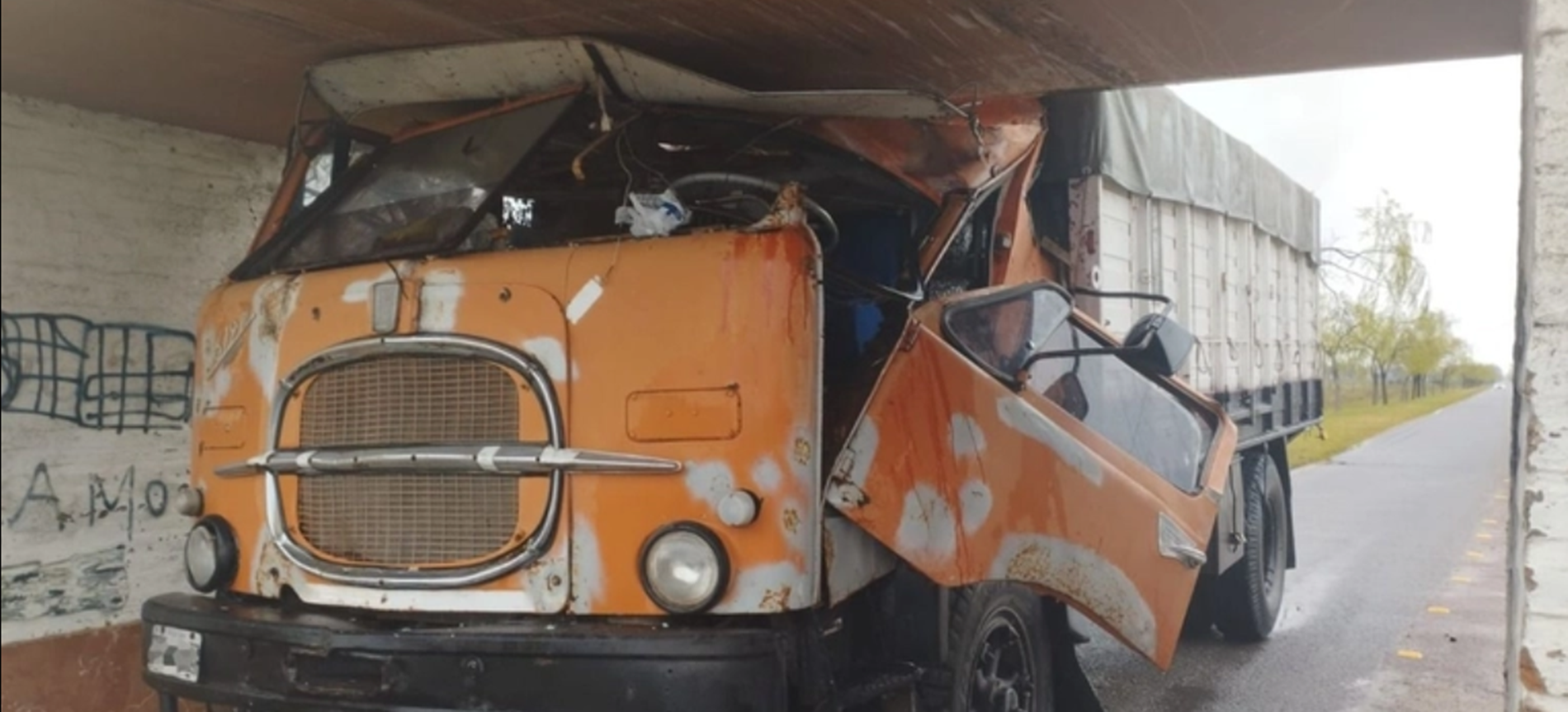 Un camionero protagonizó un insólito e impactante siniestro vial en el Camino de los Peregrinos, en el distrito bonaerense de Olavarría, al chocar su vehículo contra un limitador de altura.