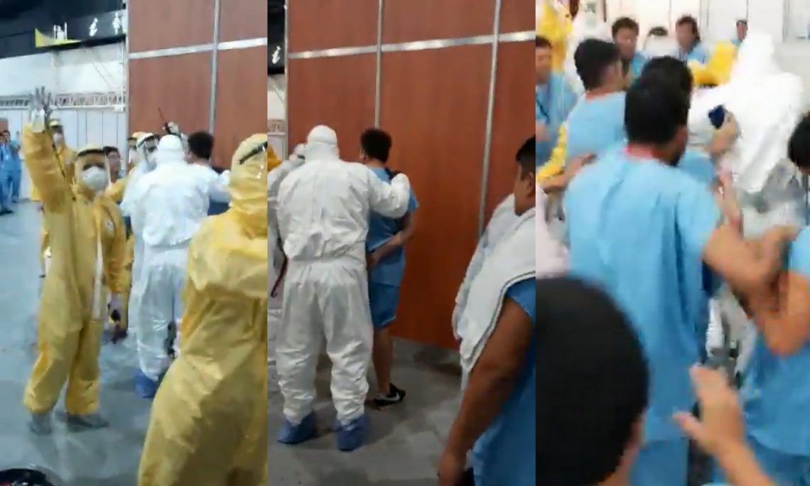 Un impactante video muestra a un grupo de pacientes, dentro de un centro de infectados por coronavirus, a las piñas porque uno se había robado un celular.