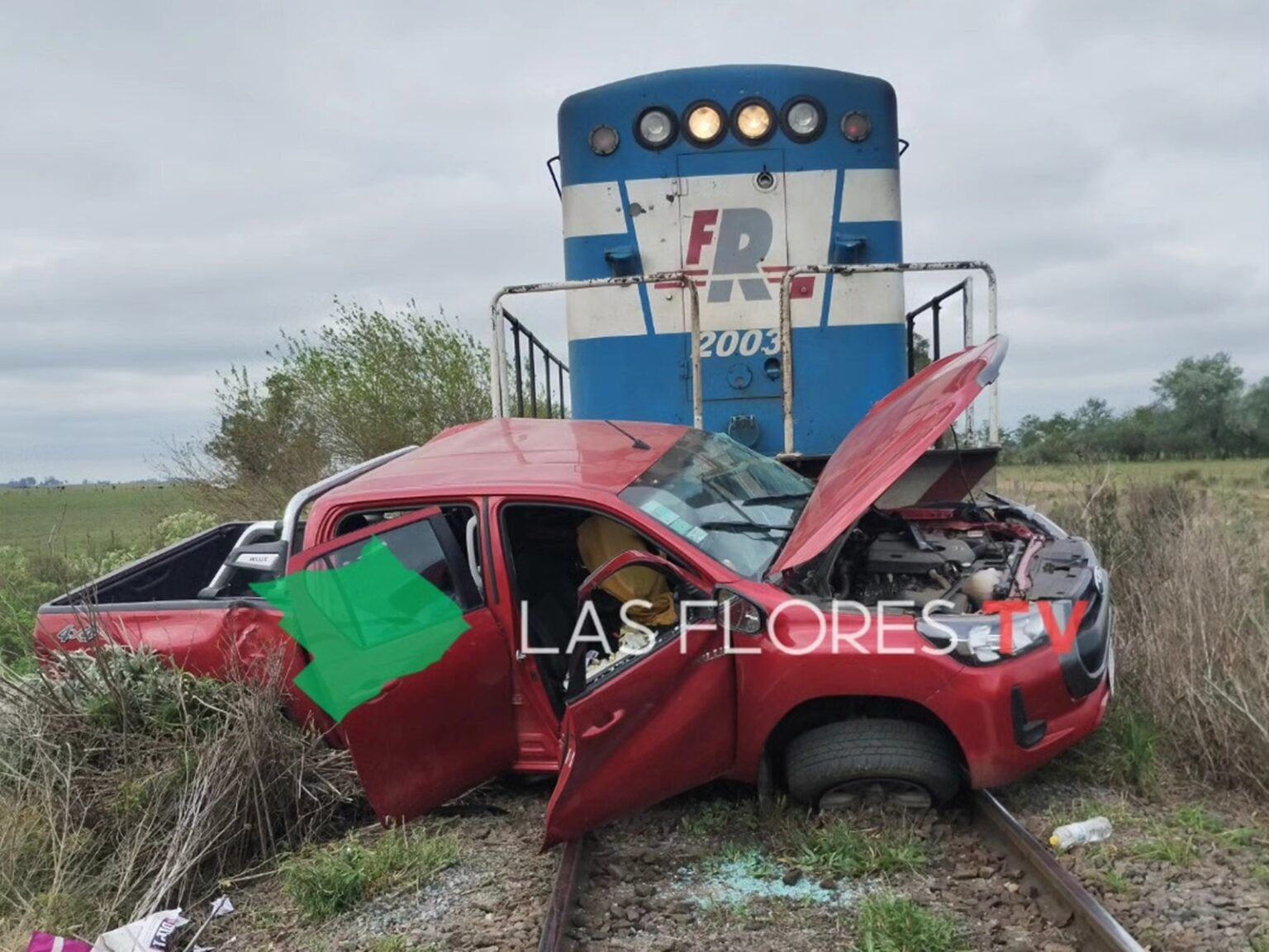 Esta tarde, un impactante accidente se produjo en el partido bonaerense de Las Flores cuando una camioneta se interpuso en el paso de un tren de cargas, provocando una fortísima colisión