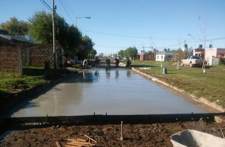 Personal de la empresa Majoba, con la colaboración de operarios pertenecientes a la Secretaría de Obras y Servicios de la Municipalidad de Lezama, procedieron a hormigonar la segunda cuadra de la Calle Ramón Gómez (Boulevard Eva Perón).