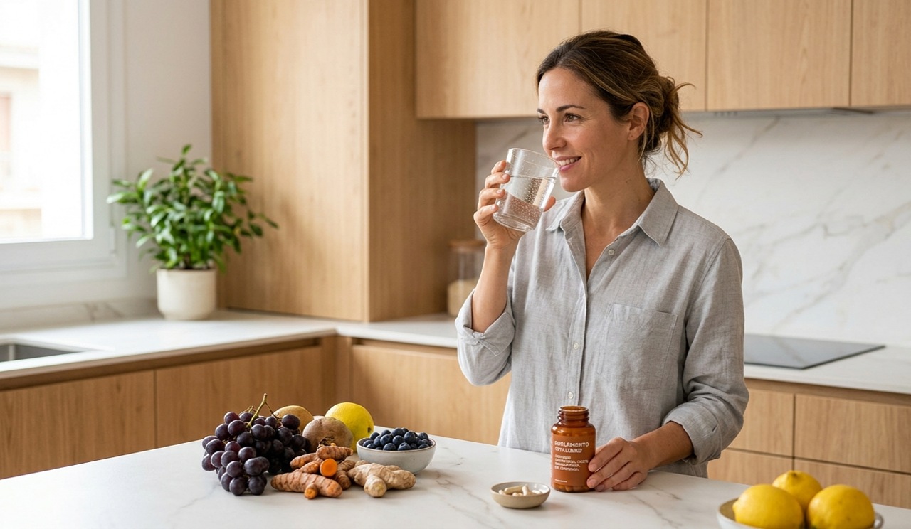 El resveratrol, por su parte, es un compuesto antioxidante presente de forma natural en alimentos como las uvas y algunos frutos rojos. Se investiga por su posible capacidad de activar ciertas proteínas relacionadas con la longevidad celular, conocidas como sirtuinas.