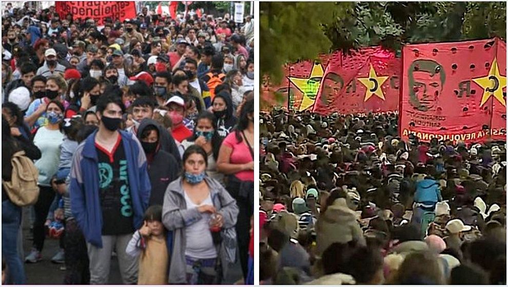 Allí, cerca de 20.000 personas, se convocaron para reclamarle al Gobierno nacional “salarios dignos, trabajo y vacunas”. La acción provocó incidentes en el marco del operativo de seguridad por la pandemia, al registrarse forcejeos y golpes en el cordón de efectivos de Prefectura Naval que custodiaba el ingreso a la Capital Federal.