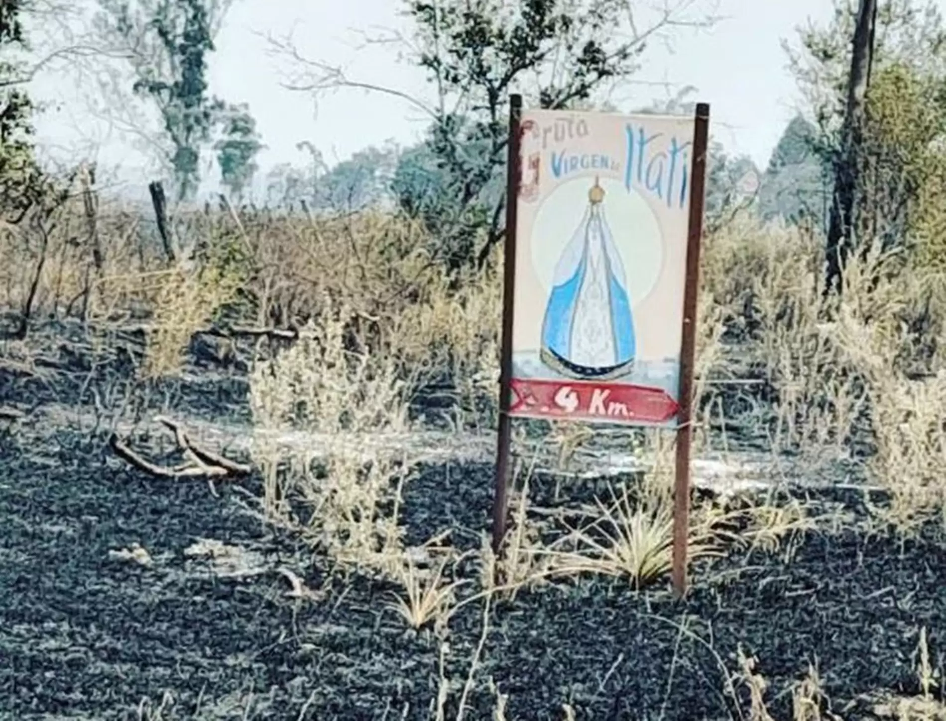 Los incendios en la provincia de Corrientes no dan tregua y en ese contexto el fuego consumió por completo el poblado rural de Rincón de Ambrosio, ubicado a unos 20 kilómetro de la localidad de San Lorenzo, sin embargo lo único que se mantuvo intacto fue un cartel que indicaba el camino hacia la Gruta Virgen de Itatí, ubicada a cuatro kilómetros del lugar.