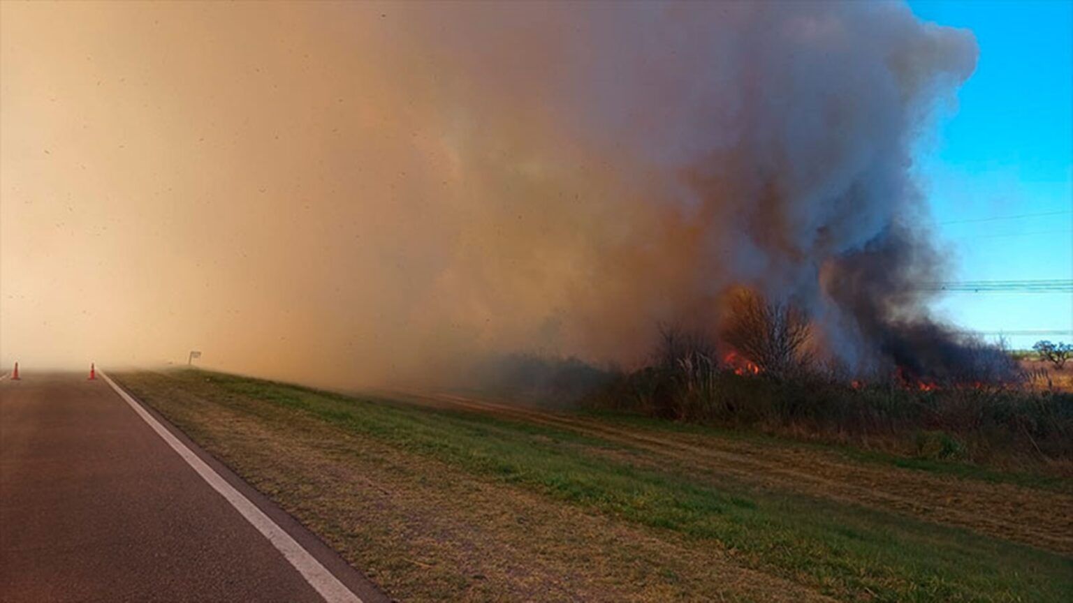 El complejo Zárate – Brazo Largo, fue cerrado esta tarde, en ambos sentidos por un gigantesco incendio de pastizales en el kilómetro 95 de la Ruta Nacional 12.