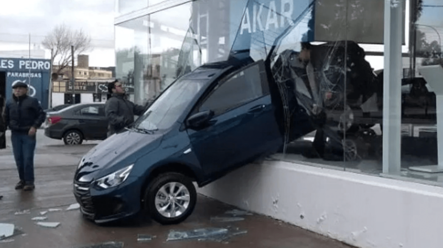 Sin embargo, cuando puso en marcha un Chevrolet Onix, no se dio cuenta de que estaba en cambio y que no tenía el freno de mano puesto. Debido a eso, salió disparado hacia adelante y se estrelló contra el cristal frontal de la concesionaria “Akar”, ubicada sobre la avenida Hipólito Yrigoyen en la ciudad chubutense.