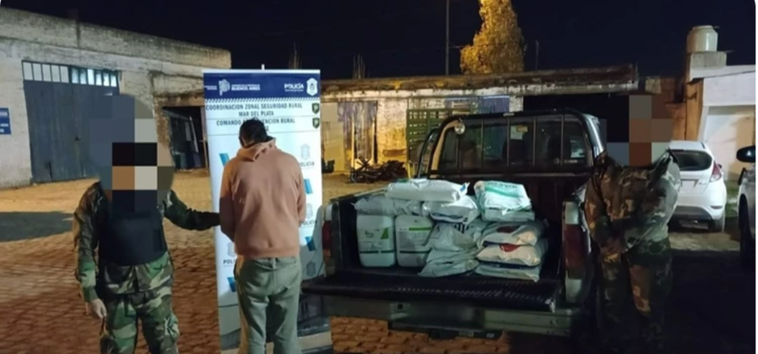 En un operativo de rutina realizado por el Comando de Prevención Rural de Balcarce, un hombre fue detenido tras ser interceptado en una camioneta que transportaba agroquímicos y herbicidas sin la documentación correspondiente. La mercadería, valuada en cinco mil dólares, había sido sustraída de un campo ubicado sobre la ruta 226.