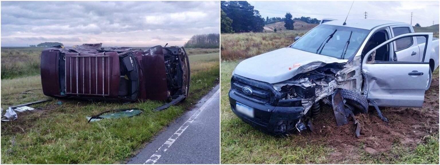 Por cuestiones que se ignoran y que las pericias revelarán oportunamente, chocaron de frente una camioneta marca Ford Ranger y un automóvil marca Peugeot 504, el cuál volcó sobre uno de sus laterales