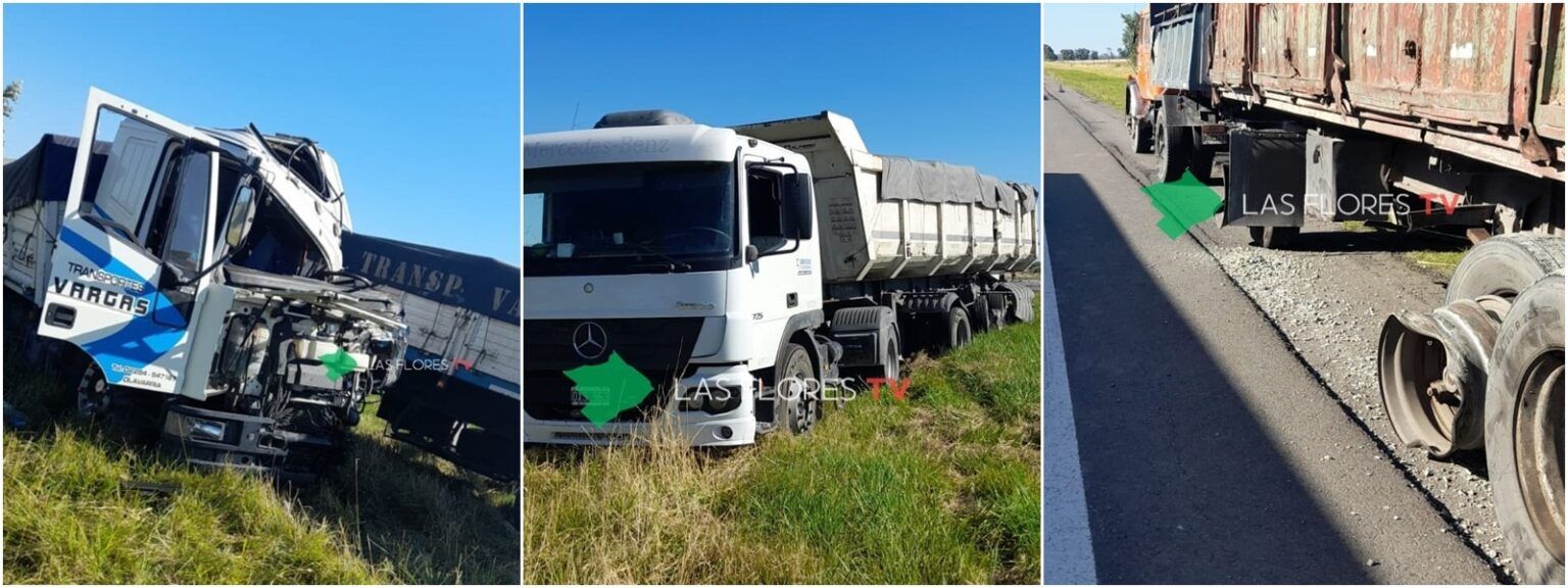 A la altura del kilómetro 125 tres camiones protagonizaron un tremendo choque que ocasionó impresionantes daños materiales en los rodados.