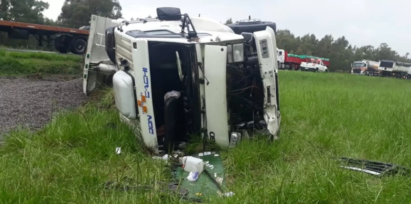 En la tarde de este jueves 30 y por causas que son materia de investigación, un camión chocó a otro en la ruta nacional 3 en jurisdicción del partido de Monte y volcó sobre el préstamo de la ruta.
