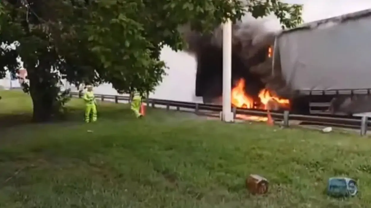 El incendio de un camión afectó el tránsito de la Autopista Riccheri, en la mano a la Capital Federal, a la altura del Mercado Central.