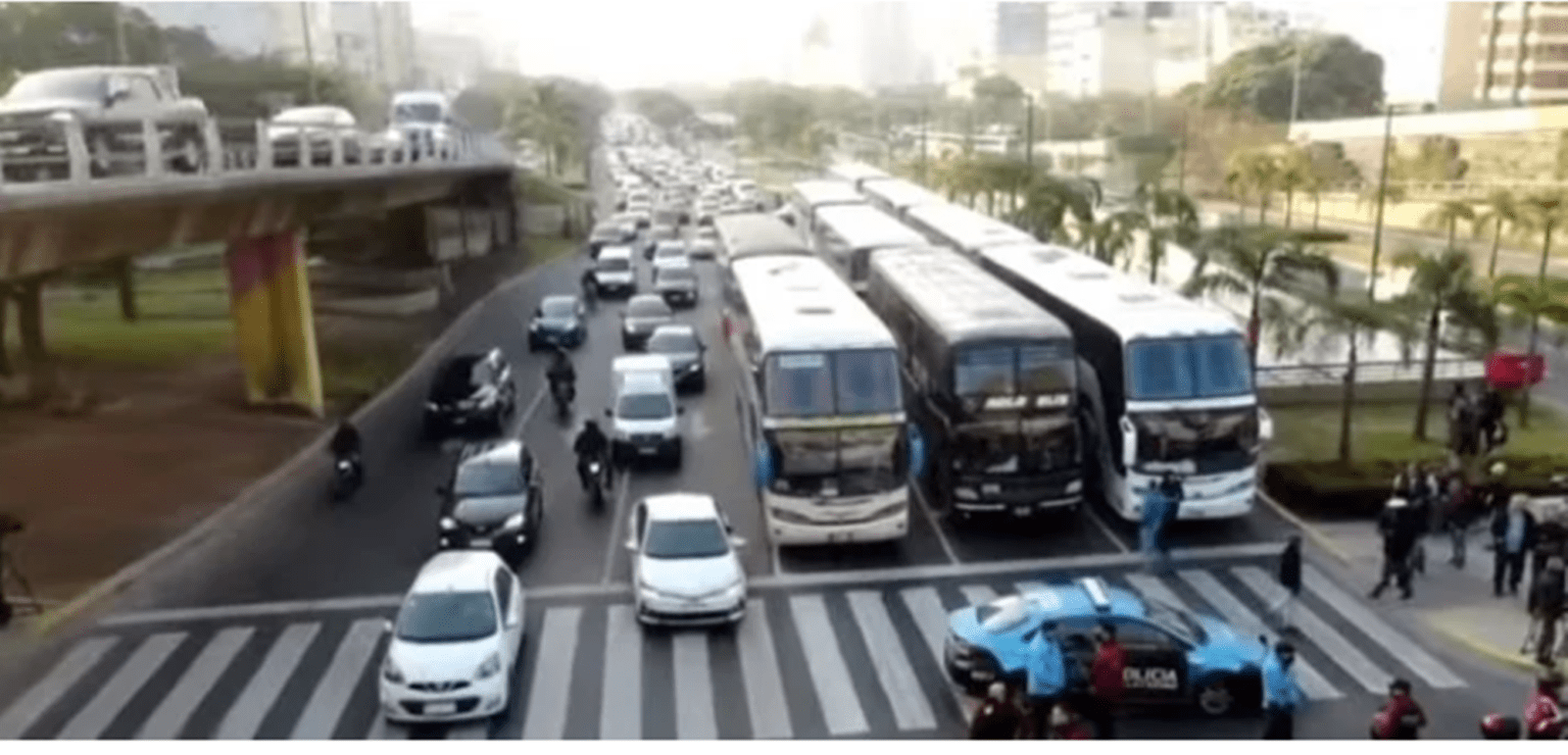 Cómo lo informara INFOZONA, desde tempranas horas de la mañana tuvo lugar la protesta con los dueños y choferes a bordo de los micros, lo que generó un verdadero colapso en la Autopista.