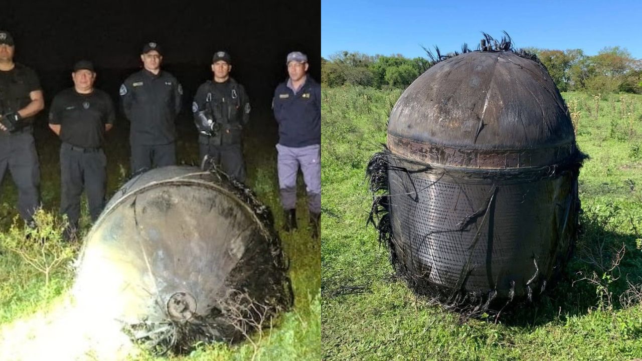 El incidente ocurrió alrededor de las 18:30 de este jueves, cuando el artefacto impactó en el terreno sin causar daños materiales ni heridos, según confirmaron fuentes policiales. El objeto, descrito como un cilindro fabricado en fibra de carbono, mide aproximadamente 1,70 metros de largo por 1,20 metros de diámetro. En uno de sus extremos presenta un orificio de unos 40 centímetros, mientras que en el otro se observan sistemas de válvulas y una inscripción con un número de serie, lo que sugiere una posible vinculación con tecnología avanzada.
