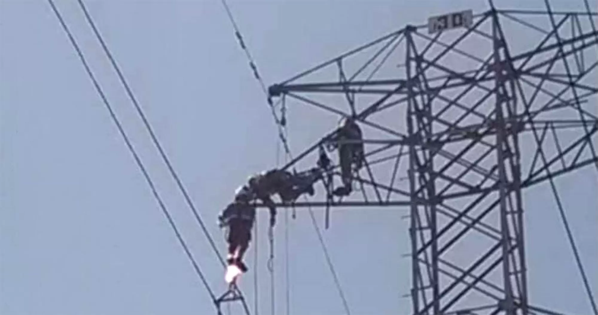 Un joven vecino se quedó enganchado en una torre de alta tensión, a unos treinta metros de altura, a la cuál había subido para bajar un barrilete.