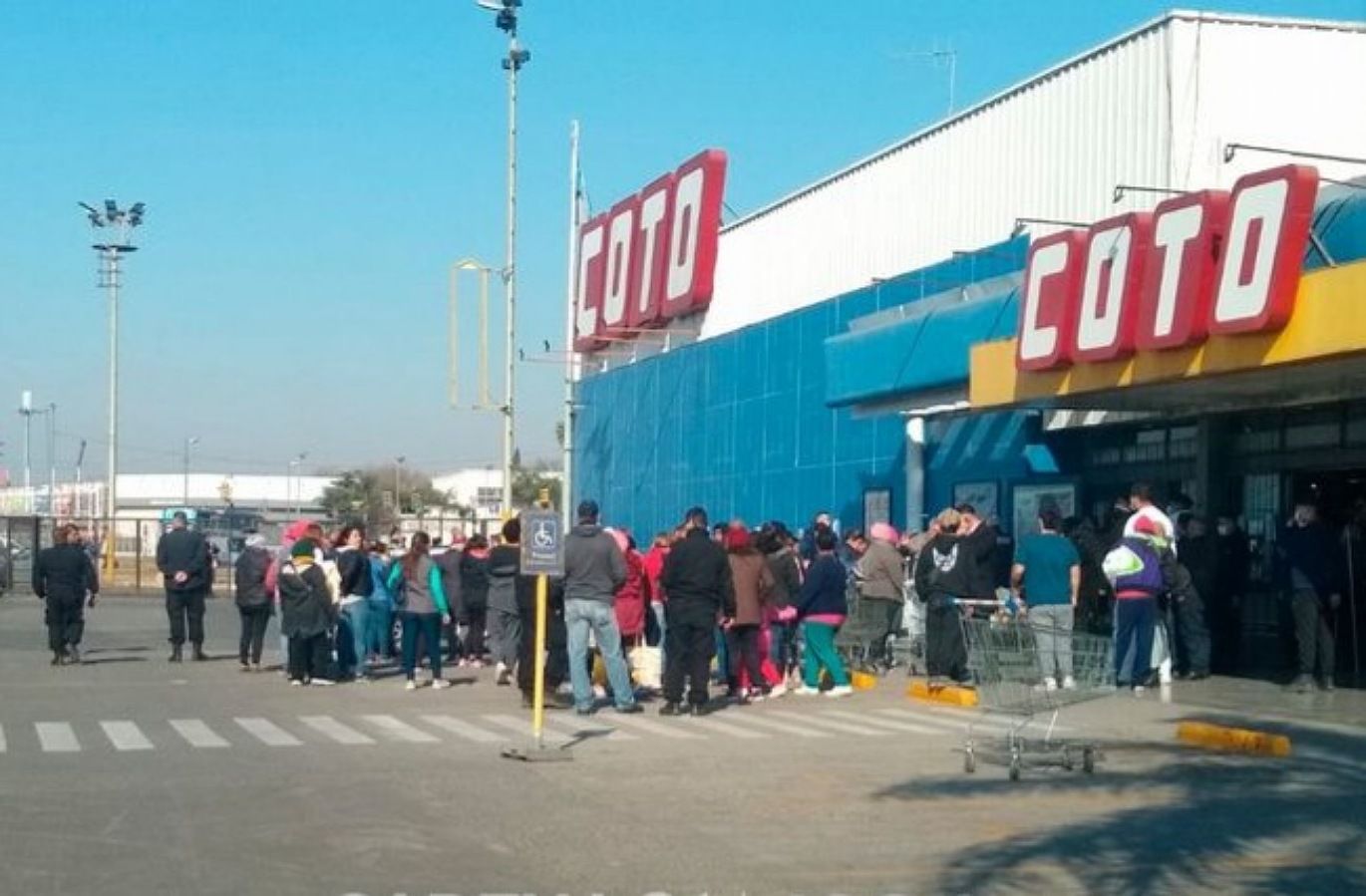 Varios manifestantes, pertenecientes a la agrupación de Raul Castells, se acercaron hasta el lugar para reclamar bolsones de comida. Se trata del supermercado Coto ubicado en avenida Circunvalación y Eva Perón.