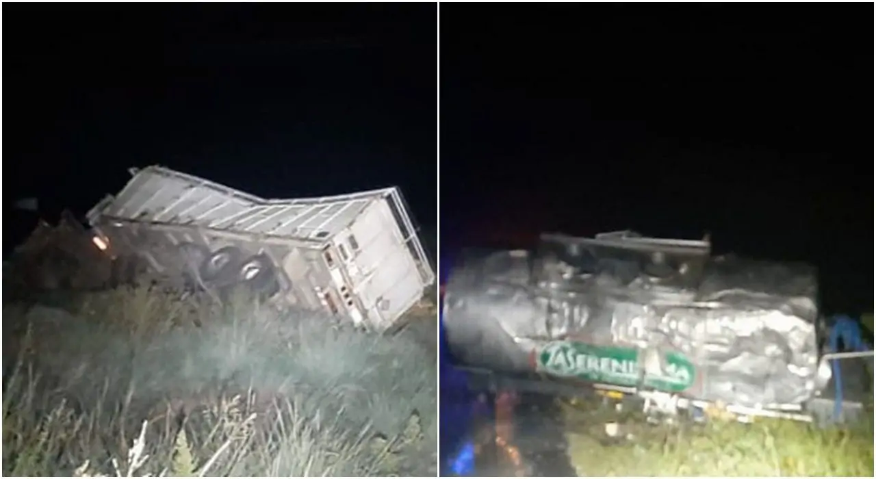 Por causas que se tratan de establecer, en el sitio indicado, chocaron frontalmente dos camiones. Uno de ellos transportaba leche de la marca La Serenísima, mientras que el otro llevaba maíz.