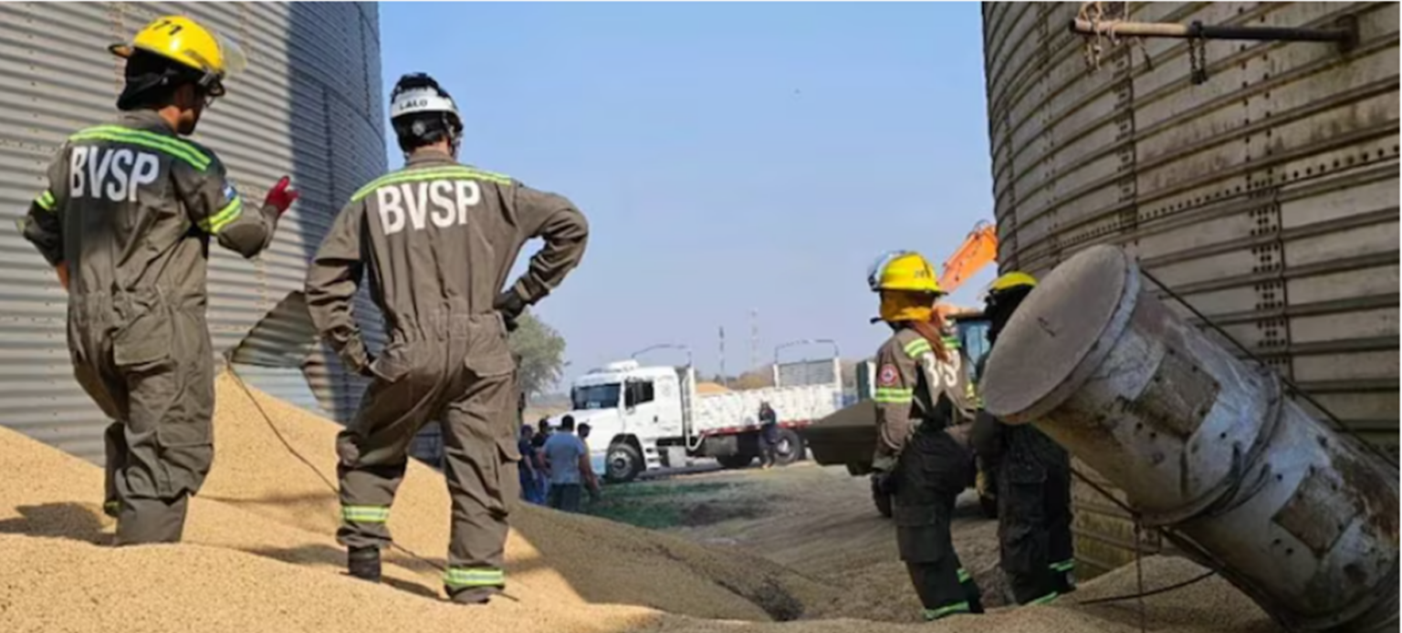 “Hay que vaciar el silo completo”, informaron los rescatistas, ya que el silo tiene capacidad para almacenar más de 6.000 toneladas de soja.