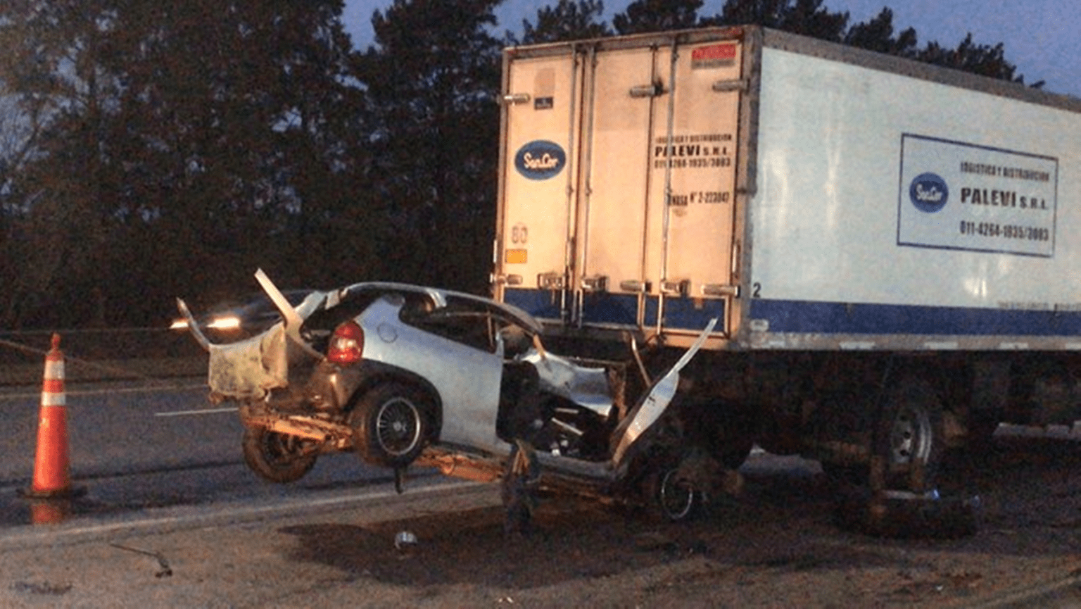 Por causas que se tratan de establecer, un automóvil chocó contra un camión y se incrustó debajo del mismo.