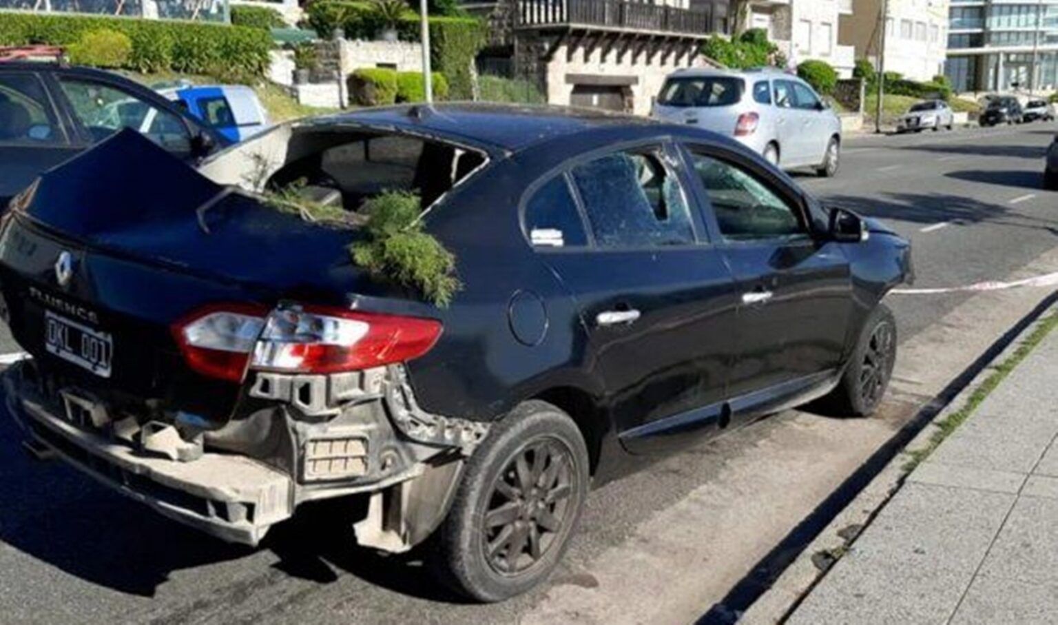 Tras el impacto, el auto terminó con daños prácticamente en toda su carrocería. Algunas de las plantas terminaron adentro del auto y el parabrisas quedó totalmente roto, al igual que varios de los demás vidrios. El guardabarros trasero también quedó desprendido y los neumáticos destrozados.