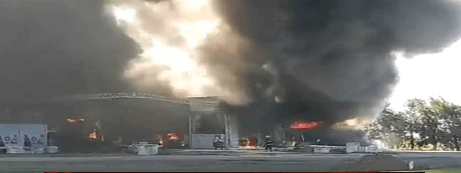 Un incendio de grandes proporciones consumió la empresa láctea La Aurora, ubicada en la ciudad bonaerense de 9 de Julio.