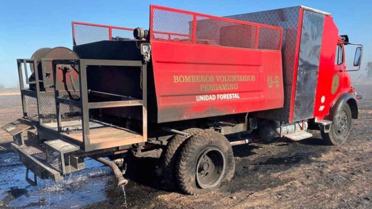 Una unidad de Bomberos de Pergamino fue destruida por el fuego en un incendio forestal