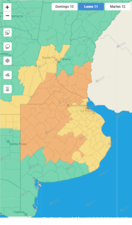 El Servicio Meteorológico Nacional (SMN) emitió una alerta naranja y otra amarilla por tormentas para gran parte de la Provincia de Buenos Aires.