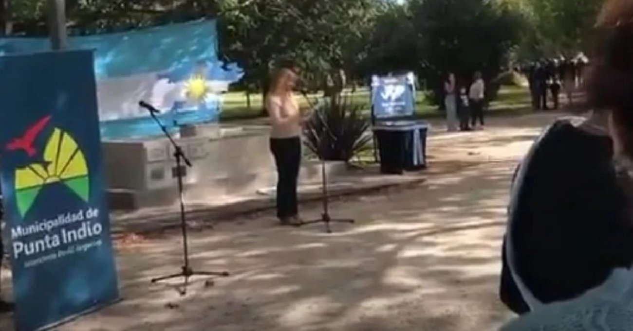 Durante el homenaje en la escuela, un tenso momento ocurrió durante el discurso de la docente de Historia y secretaria adjunta del Sindicato Unificado de Trabajadores de la Educación de Buenos Aires (Suteba) local, Soledad Reyes.