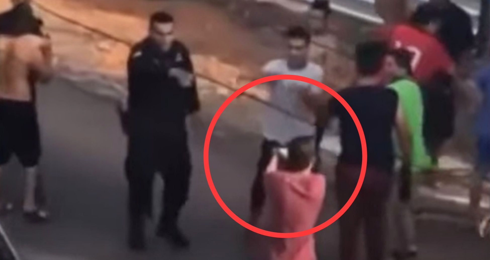 Una situación de mucha tensión se vivió tras un enfrentamiento entre un grupo de jóvenes y la policía. En un video que se difundió en las últimas horas, se puede ver cómo un joven apuntó a un policía con el arma reglamentaria que le había arrebatado momentos antes.